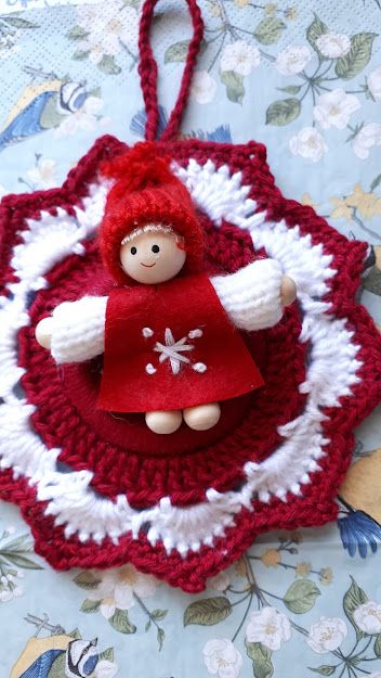 Anhänger gehäkelt und mit einem Winterpüppchen verziert. Auch als Geschenkidee für die schöne Vorweihnachtszeit
