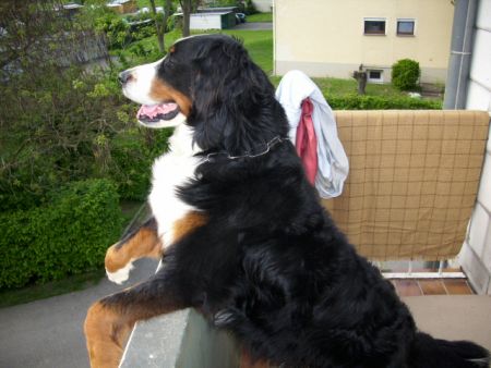 sehr interessiert schaut er raus