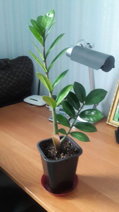 Eine Glücksfeder, Zamioculcas zamiifolia :-) die habe ich auch. Sehr pflegeleicht!