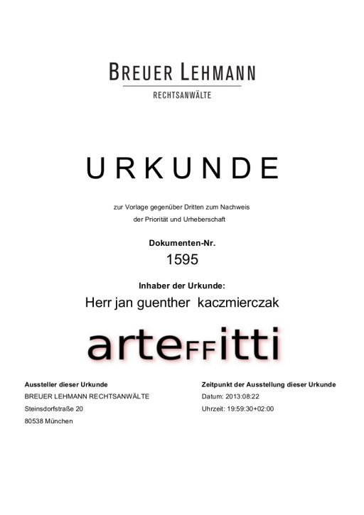 Der Begriff arteFFitti ist in Wort und Bild durch Prioriätsnachweis geschützt.