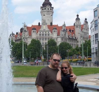 Schönes Erinnerungsfoto vor einem tollen Gebäude