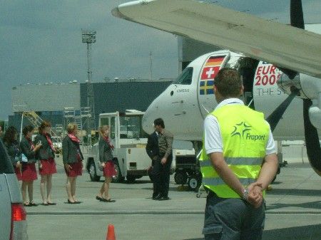 Jogi Löw steigt grade aus dem Flugzeug am Wiener Flughafen, 1 Tag vor dem Finale