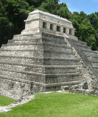 Palenque in Mexiko. Frisch renovierter Tempel der Maya.