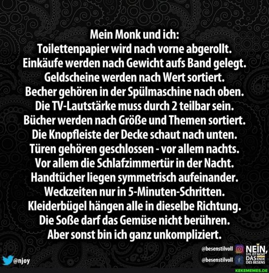 Bei den Büchern, der TV-Lautstärke und der Soße bin ich nicht dabei, ansonsten: passt schon.
