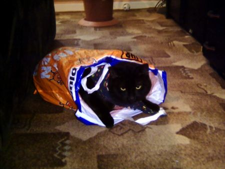 Unglaublich. Das eint alle Katzen. Lass eine Tüte auf dem Boden liegen ... und sie kriechen rein.