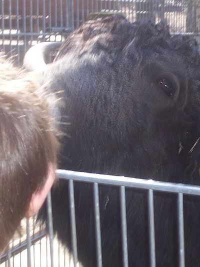 Und hier füttern die Kinder das Bison.