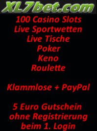 | Homepage: (??? Klicks) | http://www.xl7bet.com 100 bekannte Casinoslots, Live Tische, Live Sportwetten etc.... |